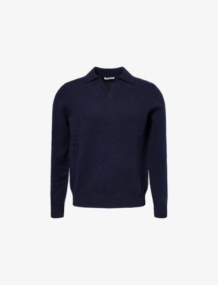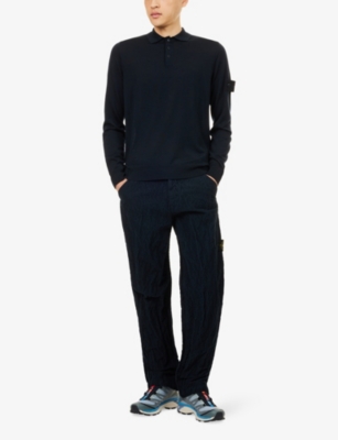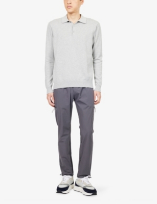 Long-sleeved logo-embroidered custom slim-fit cotton-piqué polo shirt- Price:$161.00