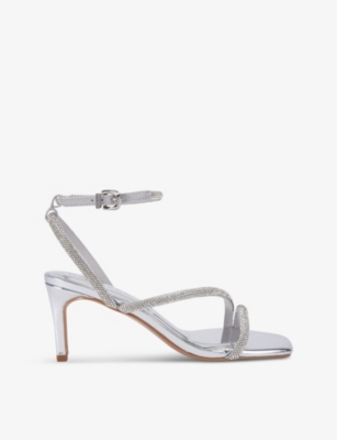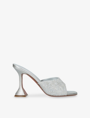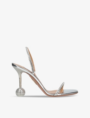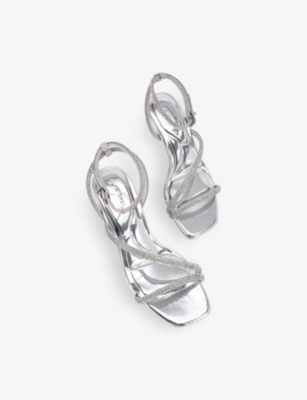 Paparazzi Low crystal-embellished metallic heeled sandals- Discount price:$59.00
