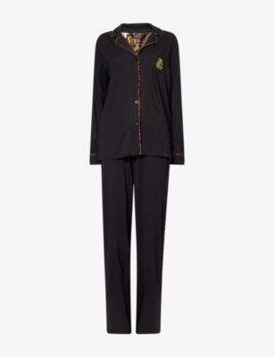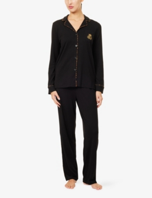 Logo-Embroidery Long-Sleeve Cotton-Jersey Pyjama Set- Price:$143.00