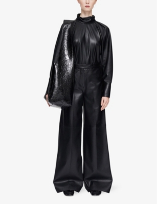 Alana belt-loop wide-leg high-rise leather trousers- Discount price:$880.00