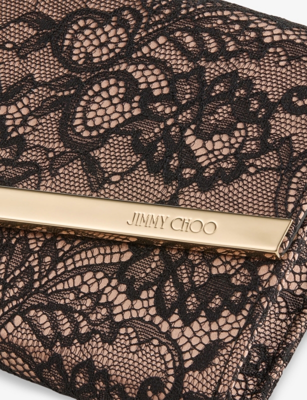 - Bracelet top handle, chain-link shoulder strap, all-over crystal embellishments, gold-toned hardware, one main compartment, fully lined
