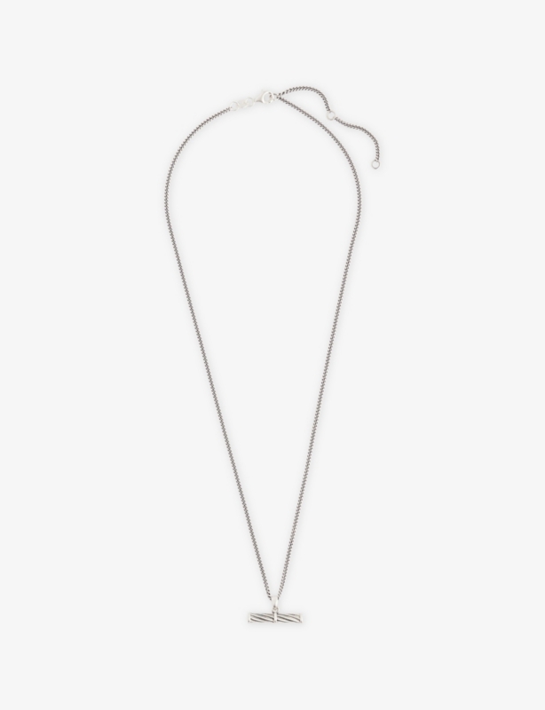 <li>Silver-toned, slim chain, T-bar pendant, adjustable length