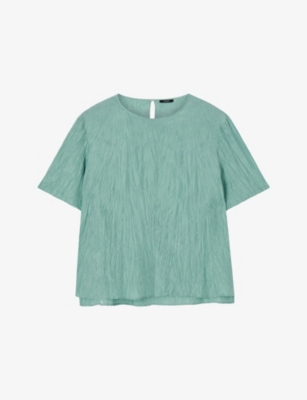 Brunet Round-Neck Crinkled-Texture Habotai-Silk Top- Discount price:$270.00