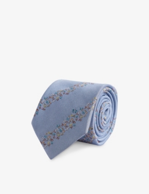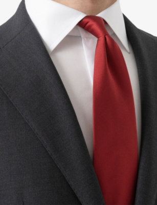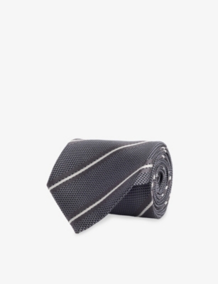 You'll find plenty of heritage-inspired men's ties in our collection. Choose from an assortment of muted colours (deep red, navy blue and pale grey) and a variety of premium materials such as silk and pure cotton. Team yours with sleek white shirts tucked into chinos to make a smart impression at a work meeting. Why not mix things up with Selfridges's men's ties in unexpected prints? Polka dots and animal patterns make an instant splash, as do unconventional materials and textured finishes. We're talking thick wool blends, breezy linen styles and subtle embossing. Keeper loops make sure everything stays nicely in place as you go about your day.