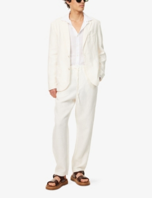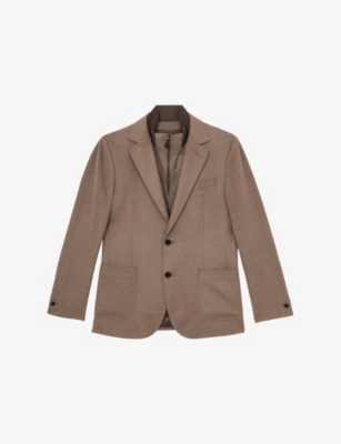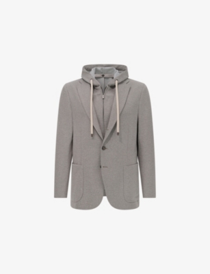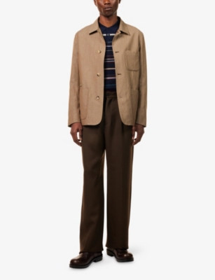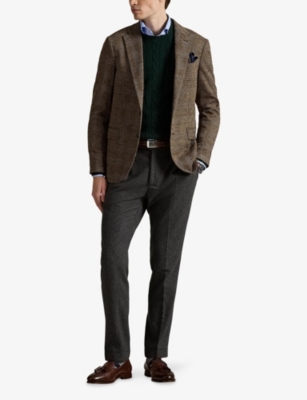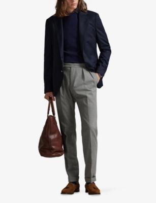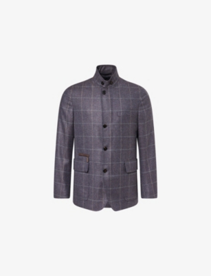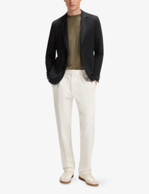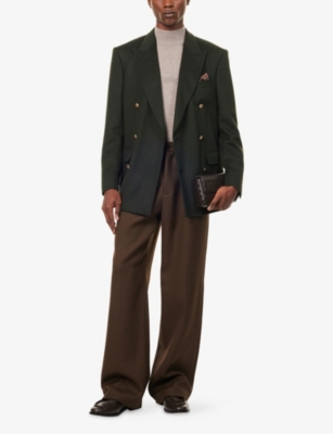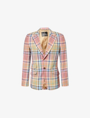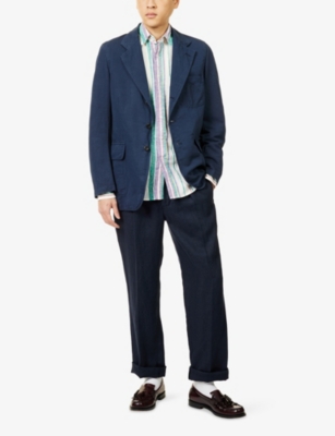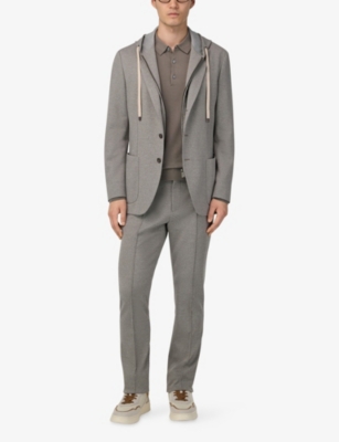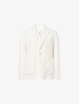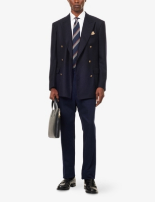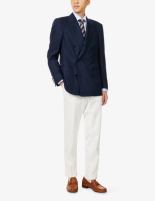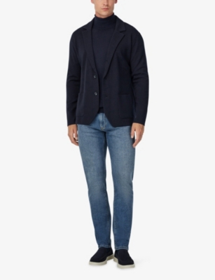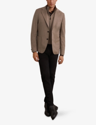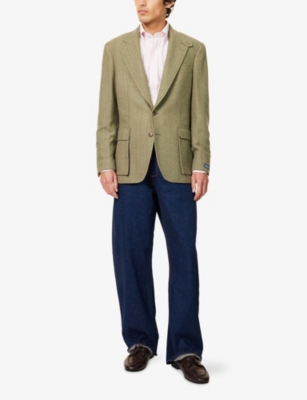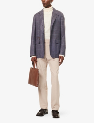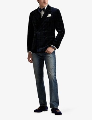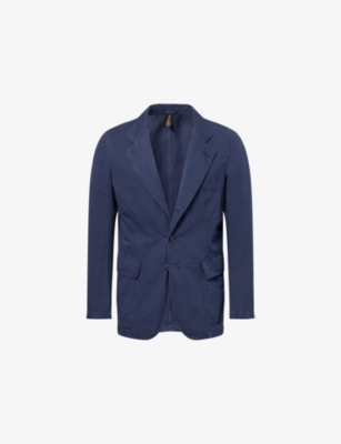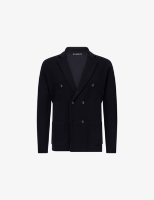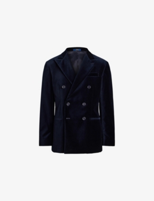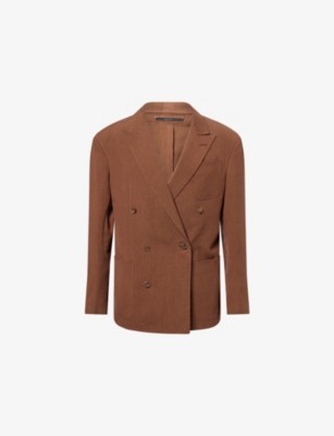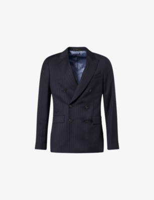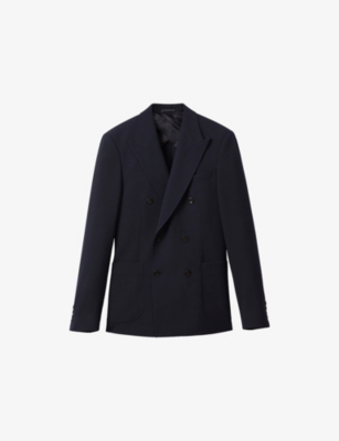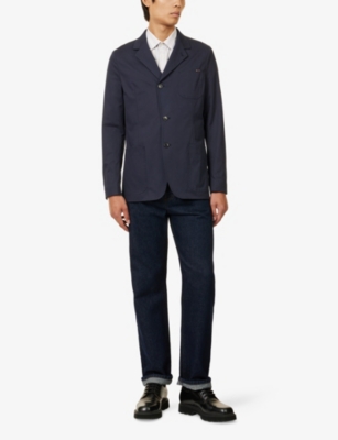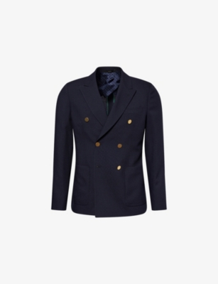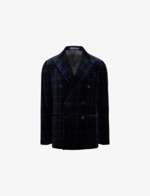 Our men's double-breasted blazers cut a sharp, powerful silhouette - the classic style enhances your shoulders and trims your waist. These jackets combine well with decadent accessories such as pocket squares or opulently patterned ties. Our range includes a variety of single-breasted iterations in fabrics, including ultra-cosy wool and breathable linen. Round out your collection with office-ready options with check, puppy-tooth or pinstripe finishes, and consider durable twill and seersucker textures to smarten up your weekend looks.Â