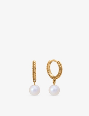 Circular drop 18ct yellow gold-plated vermeil sterling-silver and pearl stud drop earrings- Price:$225.00