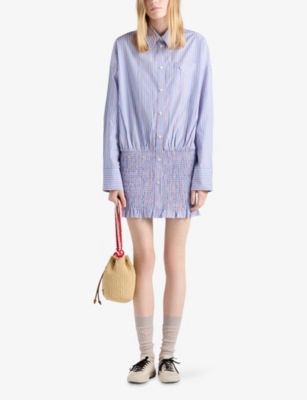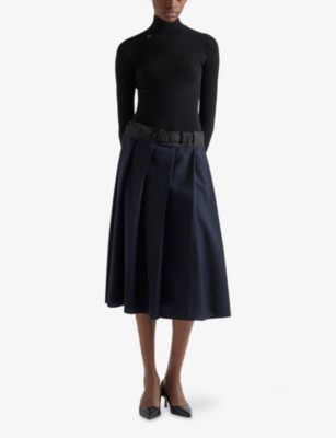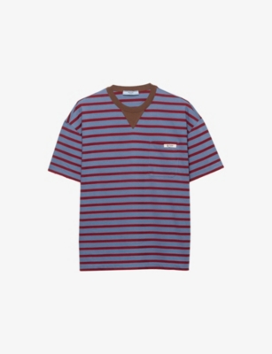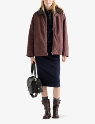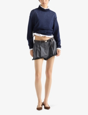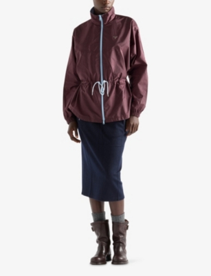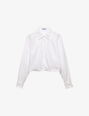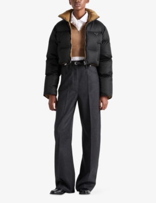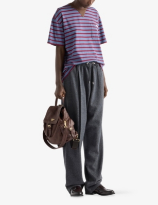 Across our Prada clothing selection, you'll find cropped cuts, oversized silhouettes and utility-inspired materials. Contrast elements and gleaming hardware add a contemporary slant to shirts, which are cut into relaxed fits. Look out for ski-inspired jumpers and trousers finished with brightly coloured stripes and bold geometric patterns. For irresistible comfort, consider sweatshirts in breathable cotton with tone-on-tone branding, as well as figure-flattering silk skirts and blouses.