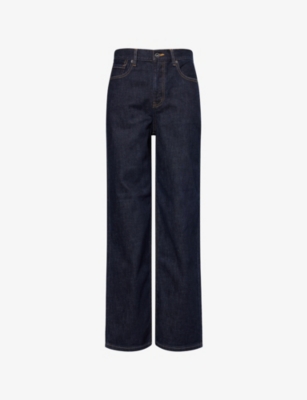 Brand-Embroidery Barrel-Leg Denim Jeans