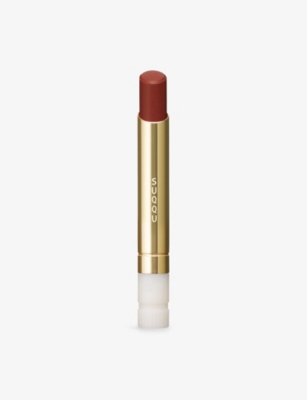 Start your regime with a plant-based primer that's packed with nourishing oils to keep skin quenched beneath your foundation. Look out for options with added SPF for protection against the sun's rays too. Say goodbye to blemishes with a liquid foundation or loose powder. There's a wide range of skin tones on offer that makes it easy to find a match. We're finishing up with a bold slick of SUQQU lipstick to make sure that when we're talking, we've got everyone's attention.