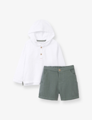 Crinkled-Texture Cotton Hoody and Shorts Set 0-18 Months- Discount price:$49.50