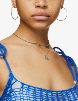 Our collection of Vivienne Westwood necklaces dazzles with both heritage and street cred. The brand was founded in the 1970s by Vivienne Westwood, pioneer of the punk scene and disruptive doyenne of London's fashion world. Today, it produces statement jewellery ranging from the delicate to the gloriously blinged-up.