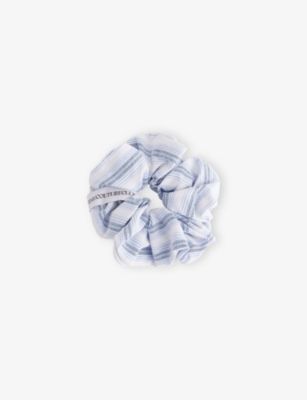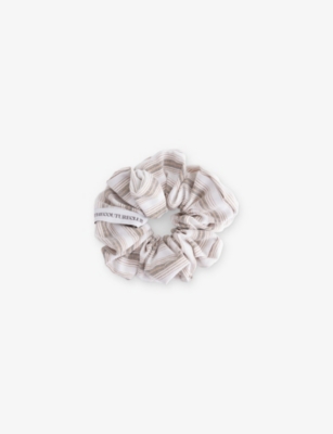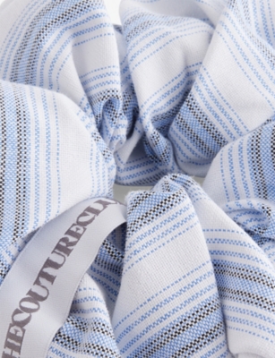 THE COUTURE CLUB: Striped Brand-Patch Cotton-Blend ScrunchieTHE COUTURE CLUB: Striped Brand-Patch Cotton-Blend Scrunchie