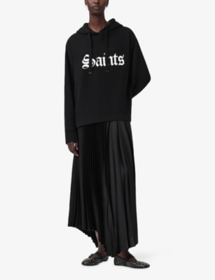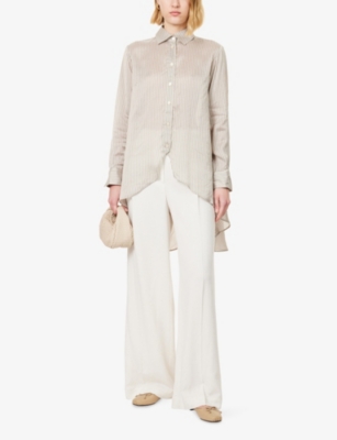 Across our range of ladies' long-sleeve tops, encounter pieces sure to enliven a casual ensemble. Figure-framing bodysuits provide a flattering silhouette, while oversized iterations offer draped shapes for relaxed styling. For smarter days, choose a structured shirt or softly woven blouse. Expect delicate detailing, from lace collars to curved hems and gathered pleats to scalloped trims. Vibrant patterns appear throughout, with classic designs including vertical stripes and ditsy floral prints. Looking for something bolder? Opt for a top decorated with an all-over graphic print. We're talking sprays of graffiti, newspaper cuttings and patchwork collages.Â
