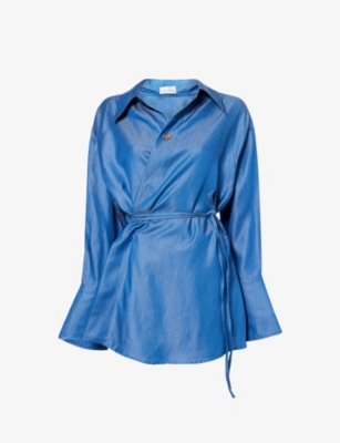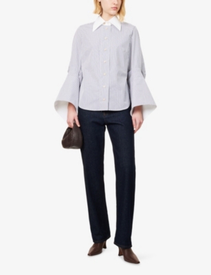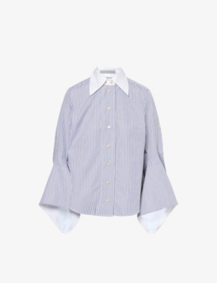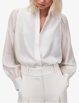 Our selection of women's long-sleeve designer tops brings statement shapes that will delight the fashion-forward. Make an entrance in a shirt with exaggerated puff sleeves or a high frilled neckline. Cut-out panels, asymmetrical necklines and detachable sleeves will excite those who enjoy dressing adventurously. There are plenty of textured fabrics to explore throughout the range, from sparkling metallic constructions to dramatic semi-sheer mesh pieces.