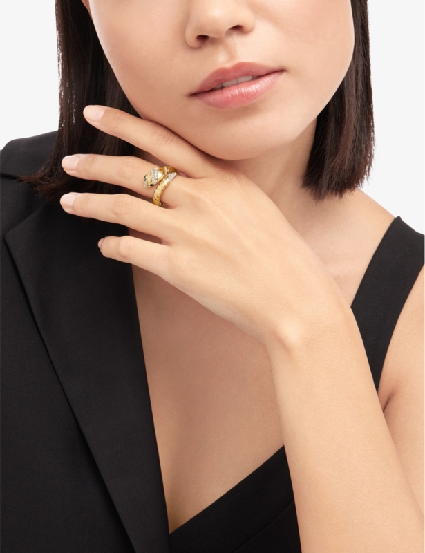 Serpenti Tubogas 18ct yellow-gold, 0.50ct brilliant-cut diamond and onyx ring
