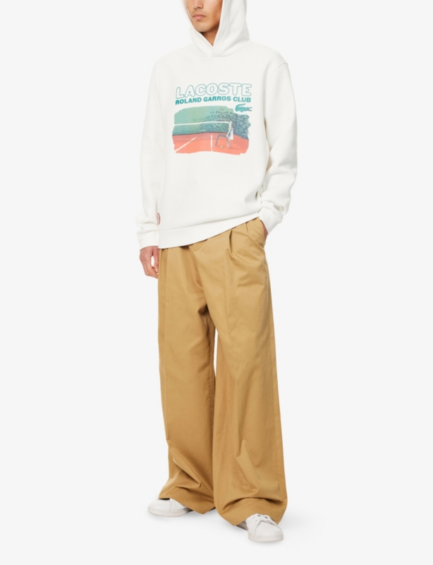 - Loose fit, high neck, dropped shoulders, long sleeves, two side welt pockets, tonal crocodile logo embroidered at chest, ribbed trims, contrast piping, satin-effect fleece