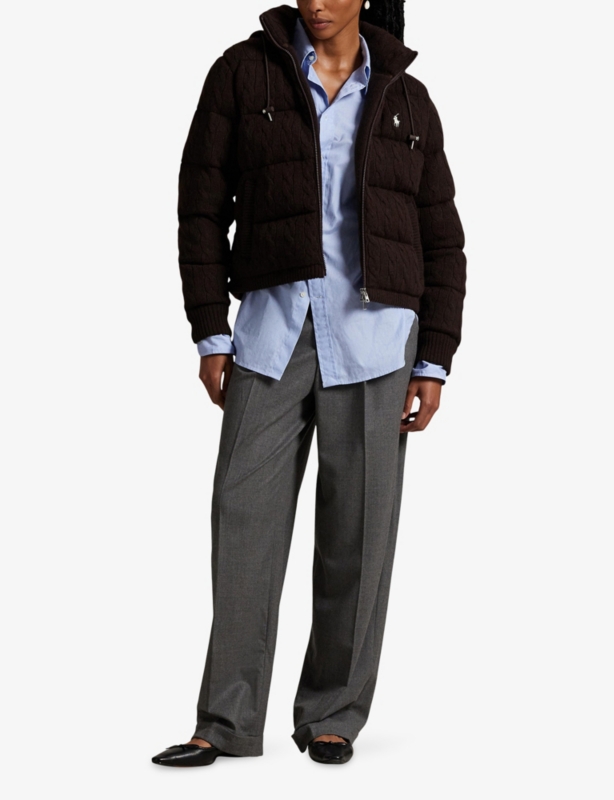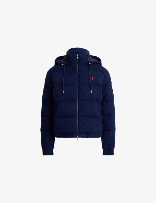 - Regular-fit, round neck, long sleeves, embroidered branding at chest, all-over cable knit, ribbed trims