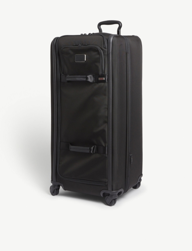 - Front-lid or split-case zip entry to main compartment, front U-zip pocket, gusseted front straight-zip pocket, retractable top and side grab handles, bottom grab handle, three-stage telescoping handle, four dual spinner wheels, moulded impact-resistant side panels, protective bumper rails, built-in USB-C charging port, built-in TSA combination lock, TUMI Tracer®, internal zip divider, hanging mesh zip pocket with removable USB cable, large mesh zip pocket, three zip pockets, removable garment sleeve with fibreglass rod, zip pocket on removable garment sleeve, compression straps, hanger bracket