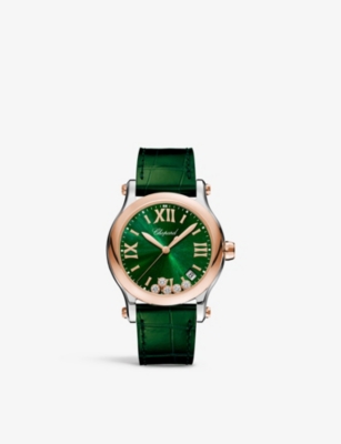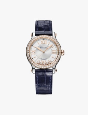 Happy Sport medium 18ct rose-gold diamond and alligator-embossed leather automatic watch- Price:$570,000.00