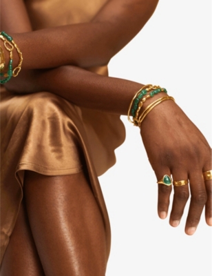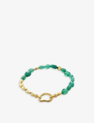 Rio 18ct yellow gold-plated vermeil sterling silver and green onyx beaded bracelet- Price:$7,750.00