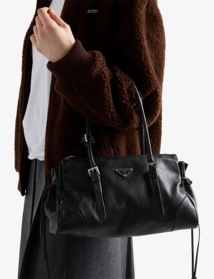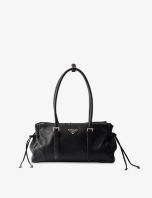 PRADA: Arqué brand-plaque leather shoulder bagPRADA: Arqué brand-plaque leather shoulder bag
