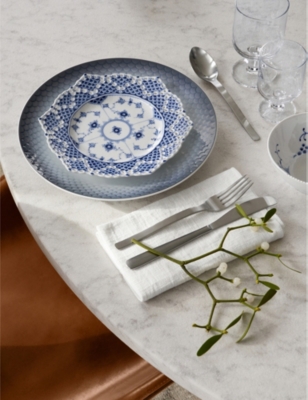 Blue Fluted half-lace shallow bowl 20cm