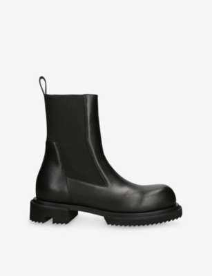 Jet black, neutrals and bursts of colour are ever-present throughout our men's premium boots range and work with standout details such as distressed effects, graffiti motifs and quilted textures. Classic and versatile, our leather versions adopt traditional ankle silhouettes; a dapper addition to office ensembles and formal attire. Searching for an attention-commanding pair? Discover statement designs such as platform, combat and western models with croc-embossed finishes, contrast soles and brogue detailing.Â