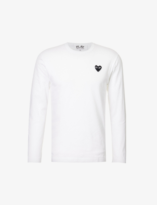 Rhinestone Heart-Embroidered Cotton T-Shirt