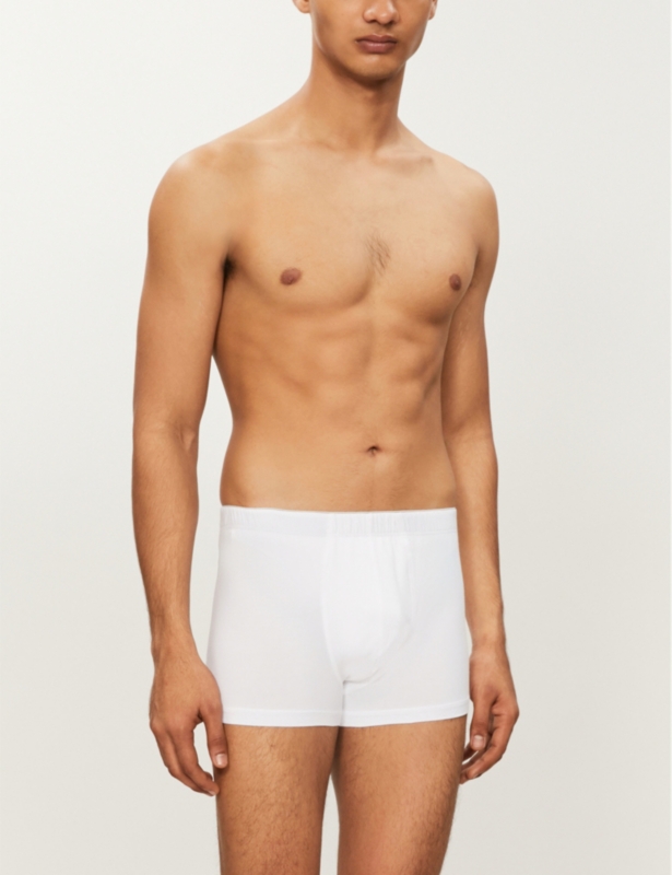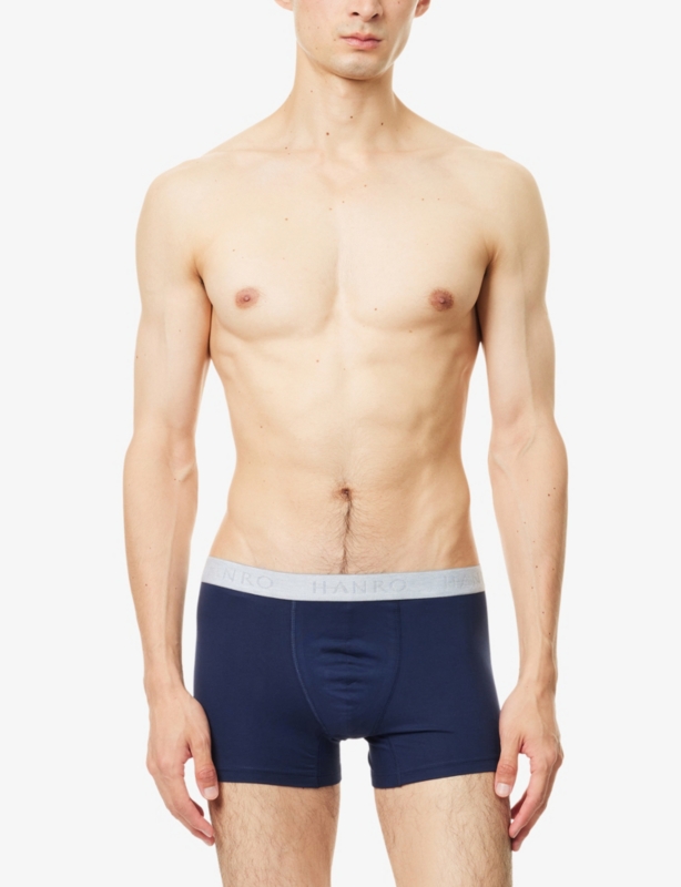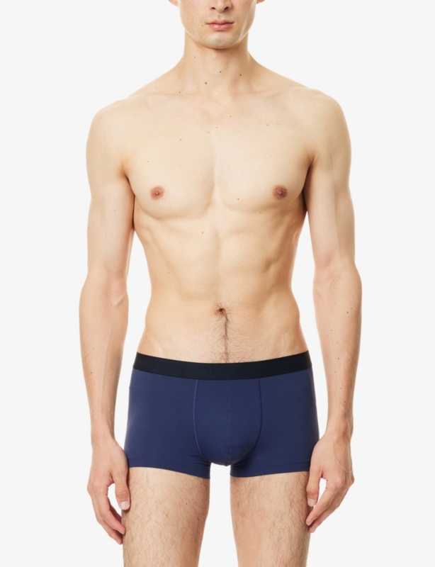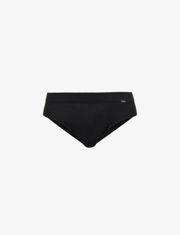 - Mid-rise, branded elasticated waistband, supportive pouch at centre front, tonal stitching