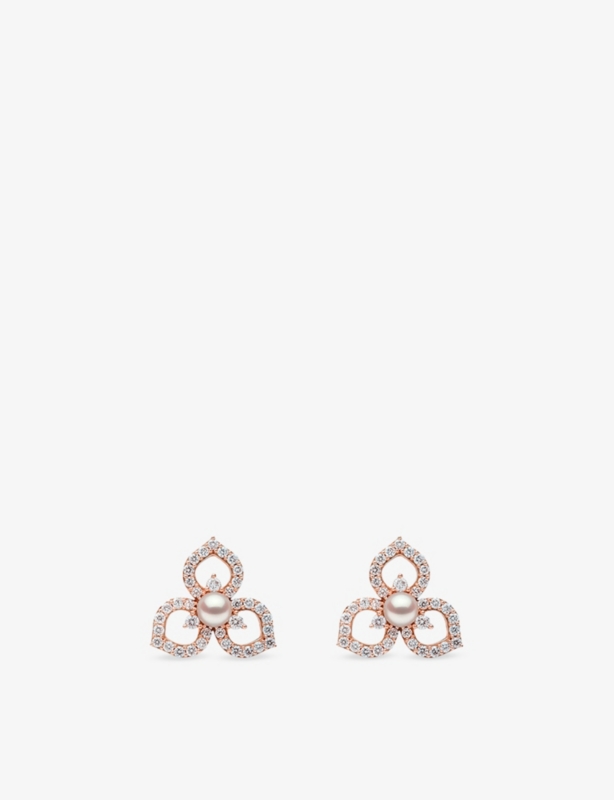 Petal 18ct Rose Gold, 0.52ct Brilliant-Cut Diamond and Akoya-Pearl Stud Earrings