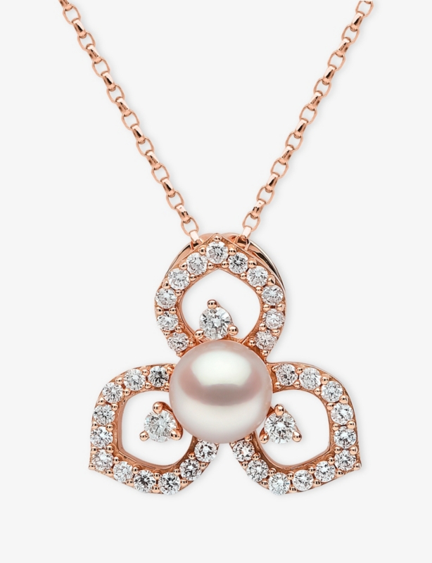 Petal 18ct Rose Gold, 0.41ct Brilliant-Cut Diamond and Akoya-Pearl Pendant Necklace