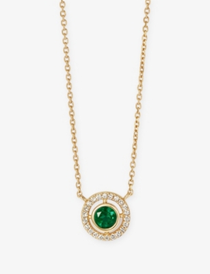 May Birthstone 14ct Yellow-Gold, Emerald And 0.08ct Lab-Grown Diamond Pendant Necklace- Price:$830.00