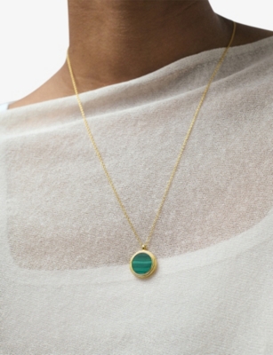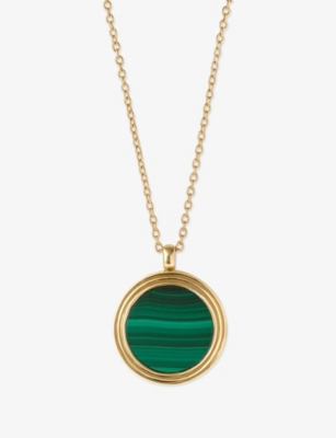 Deco 18ct Yellow Gold Vermeil, Malachite And White Sapphire Pendant Necklace- Price:$153.00