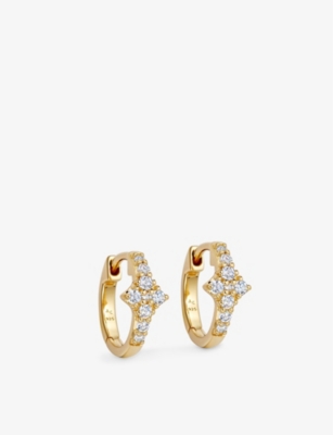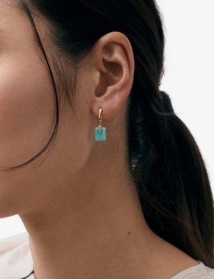 Deco 18ct Yellow Gold Vermeil, Mother-Of-Pearl And White Sapphire Drop Huggies- Price:$177.00