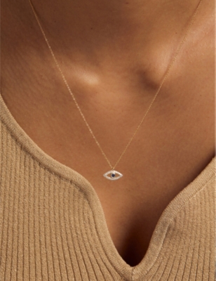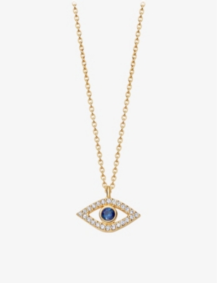 Fine Biography Evil Eye 14ct Yellow-Gold, 0.04ct Sapphire And 0.106ct Lab-Grown Diamond Pendant Necklace- Price:$710.00