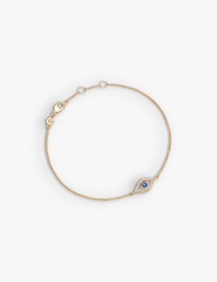 Fine Biography Evil Eye 14ct Yellow-Gold, Sapphire And 0.106ct Lab-Grown Diamond Bracelet- Price:$590.00