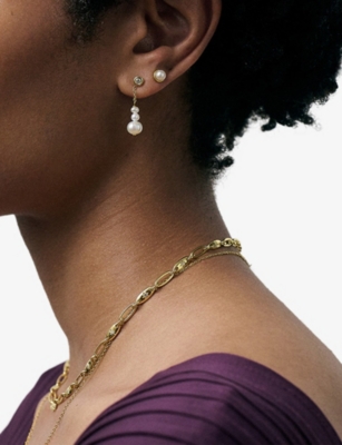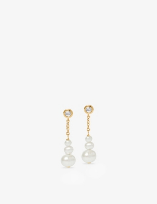 Pearls 18ct Yellow Gold Vermeil, Freshwater Pearl And White Sapphire Drop Earrings- Price:$93.00