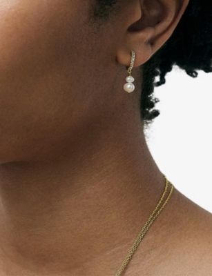 Pearls 18ct Yellow Gold Vermeil, Freshwater Pearl And White Sapphire Drop Huggies- Price:$93.00