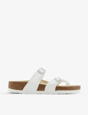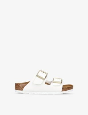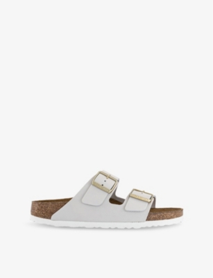 Slip-on, thong strap or slingback, our selection encompasses a variety of flat-heeled profiles in optic whites, bold blacks and brighter tones. These pieces are complete with logo-engraved hardware, crystal-embellished buckles and faux-fur linings and are ideal for tricky between-season dressing. Searching for a classic, time-tested pair? Our Birkenstock ladies' footwear lineup consists of trademark open-toe silhouettes made from eco-conscious Birko-Flor® vegan leather that's skin friendly and animal friendly (a win-win situation).
