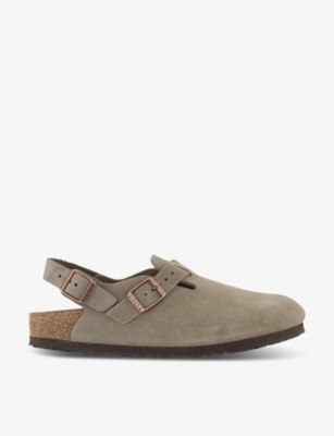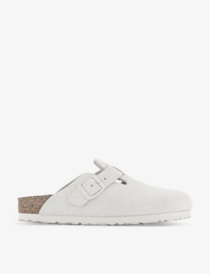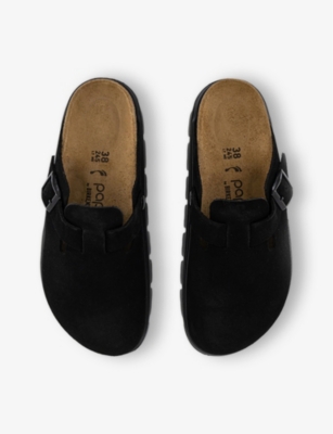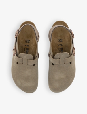 A failsafe solution to humidity and heatwaves, ladies' Birkenstocks are designed with the signature anatomically shaped footbed, which provides unmatched support and stability. Crafted from natural cork and latex with a suede top layer, the label's heralded insole comes with deep moulding and raised indentations, which promote wellbeing and improve coordination. These models are finalised with both cork and EVA soles, for enhanced cushioning and shock resistance.