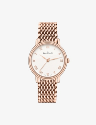 Not content with function alone, Blancpain also places equal emphasis on form. Named for the brand's picturesque founding town, the Blancpain Villeret is an exercise in classical style. With its understated dial, delicate Roman numeral numbers and slender hands inspired by the shape of sage leaves, this is the type of keep-forever piece you can pass down for generations. Keep things classic with the warm tones of a Blancpain gold case, opaline dial and brown leather strap, or choose from an array of superlative details such as diamond settings or moon phase dials.