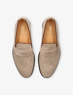 Hybrid Logo-Embroidered Suede Penny Loafers- Discount price:$630.00