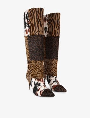 Amore Animal-Print Leather Heeled Knee-High Boots- Discount price:$166.00