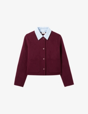 Contrast-Collar Boxy-Fit Wool-Blend Jacket- Discount price:$385.00