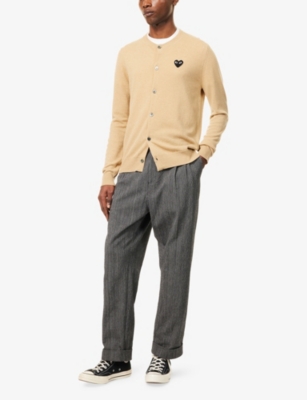 Our range of Comme des Garçons PLAY men's clothing is distinctive and diverse. In a mix of bright pastel hues and darker greys, T-shirts, hoodies and knitwear sport the trademark CDG PLAY logo in appliqué, embroidered stitching or print. The brand's red heart emblem pops up in a variety of playful designs, often spotted upside down or overlapping with another motif.