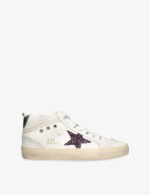 Step out in luxury Italian snakers with our collection of Golden Goose shoes. You'll notice supple leather styles for adults and kids alike, sporting the brand's signature shooting star in popping colours such as royal blue and glittering silver. Whether you're pounding the piazza or kicking back on a gondola, our range has the whole family covered.