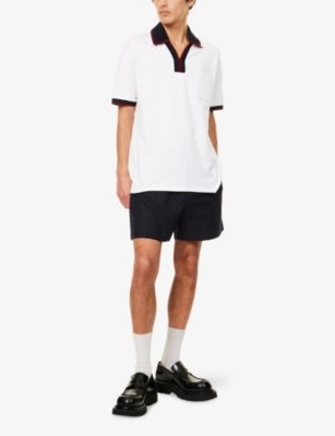 Spearheaded by Creative Director Alessandro Michele, the label continually pushes the boundaries of contemporary luxury while exploring its rich heritage. The Selfridges Gucci shorts curation spotlights distinctive patterns and materials, with inspiration pulled from past decades and the house's extensive archive. For instance, notice the GG motif, which references founder Guccio Gucci's initials, and the green and red web strip trim, which pays homage to the brand's equestrian roots. You'll find these enduring symbols decorating both sporty silhouettes and tailored styles. Channel the label's more-is-more perspective with Gucci's printed shorts. Even better, pair them with a coordinating hoodie or jacket.