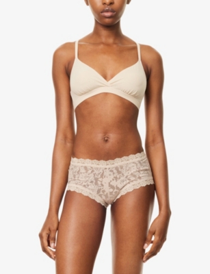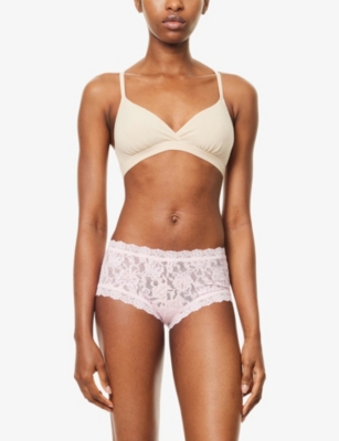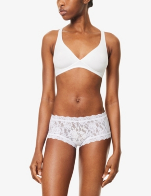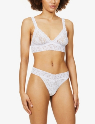 You can discover irreverent patterns in our selection of Hanky Panky knickers, including bold leopard prints. All-over lace taps into a traditional sensibility. We also have a choice of easy-going triangle bras, complete with adjustable straps so that you can find a personalised fit. They're unlined and unpadded for comfort, with elasticated bands under the bust for a generous dose of support. Match them to your pants or mix it up for a more eclectic aesthetic.