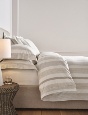 Oxford logo-embroidered striped cotton duvet cover- Discount price:$205.00