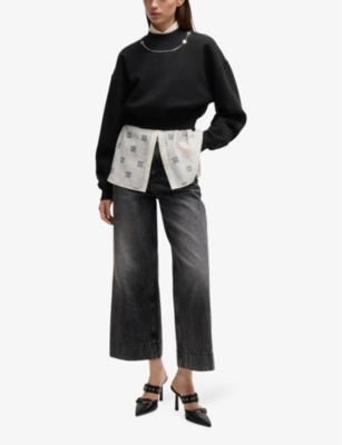 Chain-embellished cropped stretch cotton-blend sweatshirt